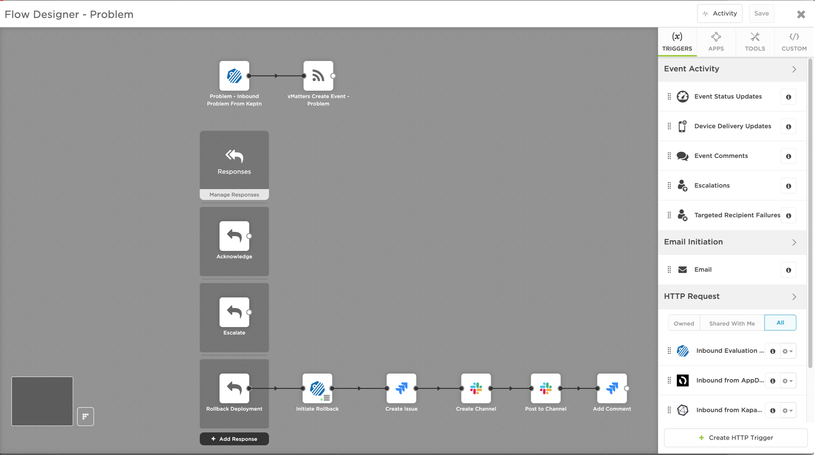Whether you’re rolling your deployment back or fixing it forward, time matters. Some common ways to gain efficiencies include getting critical information to the right people, using templated workflows, and automation. If you’re an xMatters customer, you can use scenarios to develop templates and response counts for different situations. You can use Flow Designer to build drag-and-drop workflows for repeatable, scalable processes for complex situations. You can execute automated remediation for things like process crashes, full disk prevention, and blue-green deployment rollback.