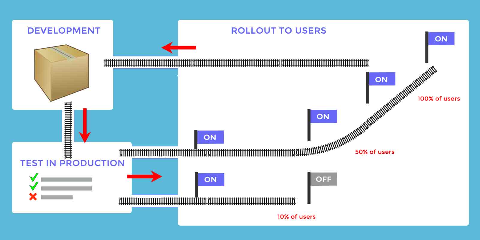 Feature flags and dark launches: Deploying your changes behind a feature flag is a method of controlling the exposure of your change to your customers. In such a scenario, a new feature or change is deployed to your customer’s application environment, but is disabled by default. Such a deployment is called a dark launch, and is a popular strategy for managing the risk associated with new application functionality.
