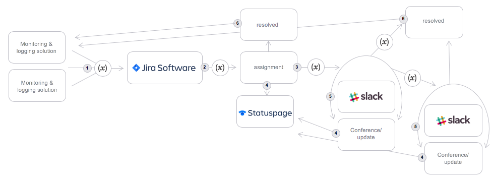 Jira Ops connects Atlassian tools like Jira Service Desk, Jira, Statuspage, and Slack to reduce time to resolve and prevent downtime. With Jira Ops and xMatters as your hubs for alerting, collaboration, and resolution, you control the process.