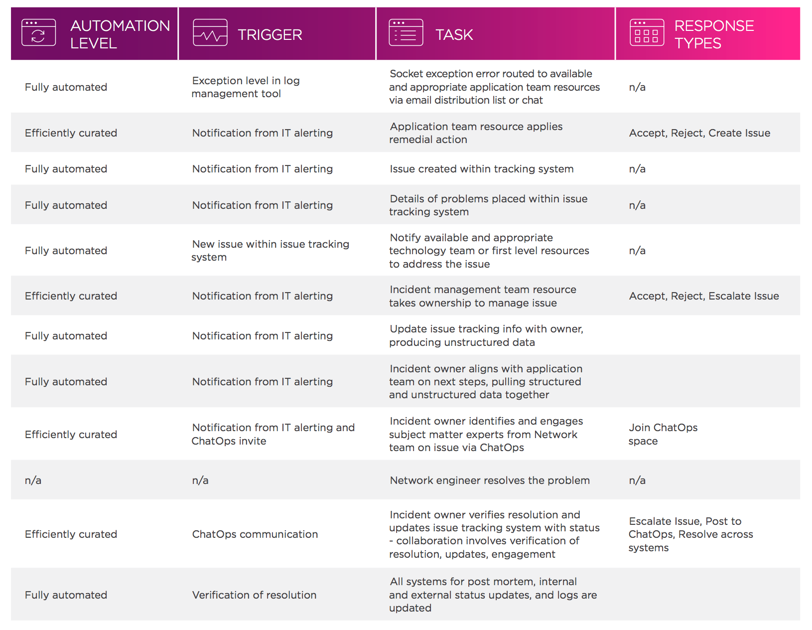 Operations like monitoring, log processing, and notifications are perfect candidates for automation, but full automation is not always in your best interest. Running triage and escalating incidents work better when they’re efficiently curated, to enable your staff to make informed decisions.