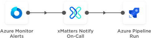 xMatters integrates with Azure DevOps Pipelines in a couple of ways. The change intelligence workflow records code change and deployment events in xMatters, helping you trace the root cause of incidents quickly. The continuous integration workflow lets you trigger alerts based on build task or release gate events — you can also configure xMatters to automatically start a pipeline when an event occurs (for example, a user's response to a notification triggers an Azure pipeline that restarts a service).