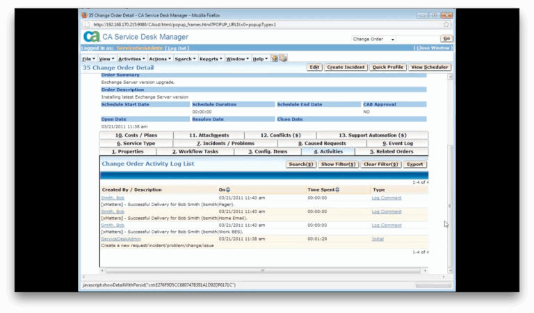 With the xMatters integration, change managers and approvers can be automatically notified directly across multiple communication channels. The closed loop integration automates the change approval process, every notification, approval and rejection is logged in xMatters. xMatters will also automatically annotate the Service Desk Manager change request with status information for a full audit trail.