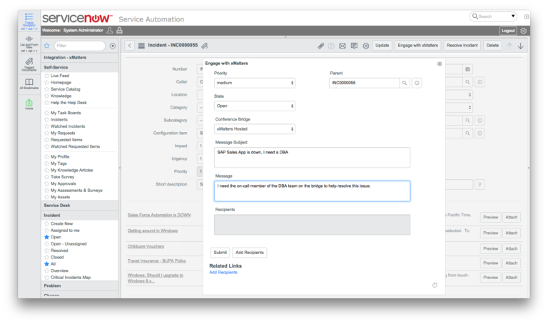 Attach chat transcripts and incident timelines to your ServiceNow ticket for full transparency and easy reporting when resolved.