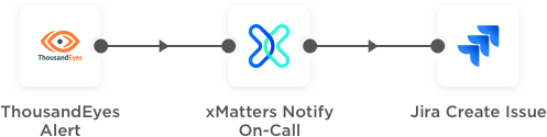 With this integration, use ThousandEyes to monitor digital services and detect any issues then send alerts from xMatters to notify teams' on-call members of any service degradations.
